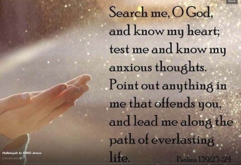 David wrote another prayer, “Search me, O God, and know my heart; Test me and know my anxious thoughts. Point out anything that offends You, and lead me along the path of everlasting life (Psalm 139:23-24).
